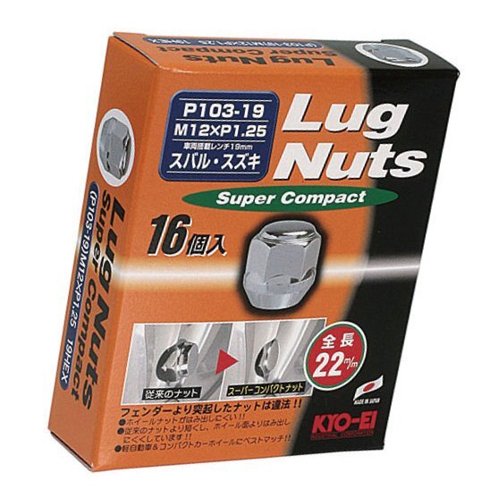 - 軽自動車用 袋ナット 19HEX M12xP1.25 60°テーパー座 全長22mm 【メッキ】協永スーパーコンパクト 16個 アルト エブリィ /P103-19-16P