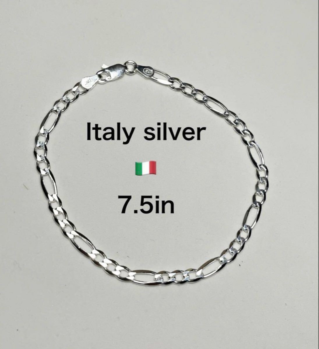 - LMKひ5でE イタリアシルバーブレスレットItalysilver銀フィガロチェーン4ミリEvく