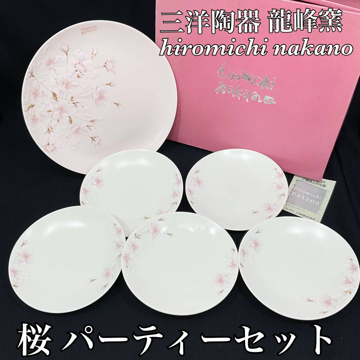 - 【未使用】hiromichi nakano 三洋陶器 龍峰窯 桜 パーティーセット 大皿 1枚 小皿5枚 ヒロミチナカノ 陶磁器 ピンク サクラ SAKUR E120