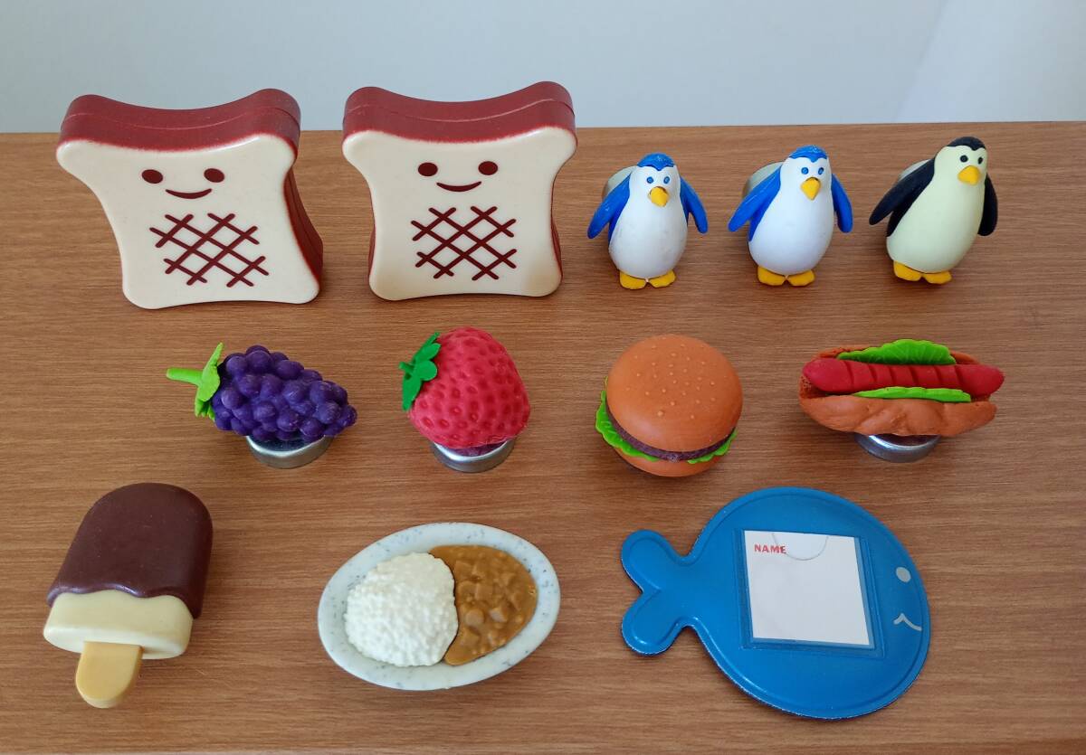 - レトロ マグネット 磁石 食パン ハンバーガー カレー アイス ぶどう いちご ペンギン等 12個 まとめて