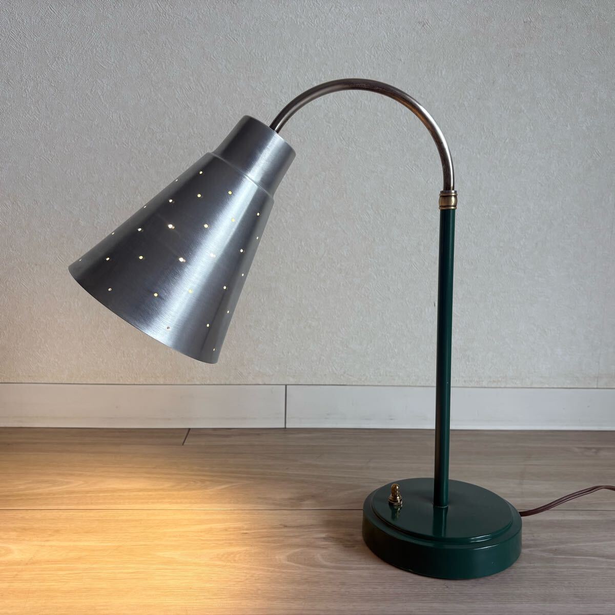 - アメリカ製ビンテージ アルミシェード スチールテーブルランプ カスタムペイント(グリーン)