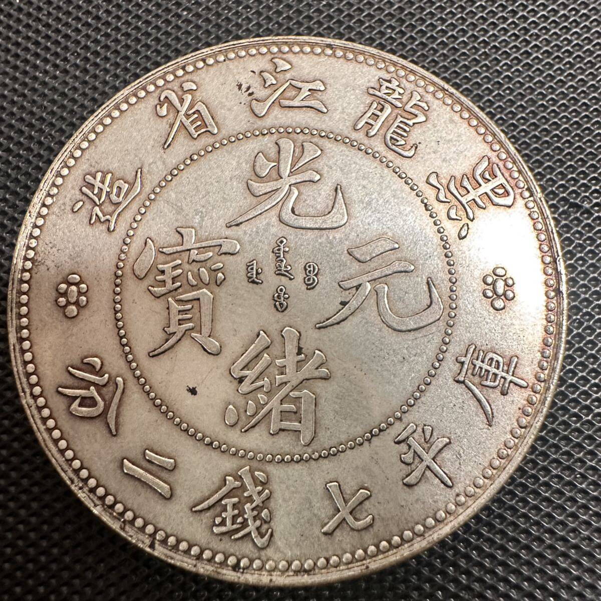 - 中国 古銭 銀幣 宣統元宝 B12 庫平七銭二分黑龍江省造 銀貨 重さ26.8g 大型コイン 美品 希少