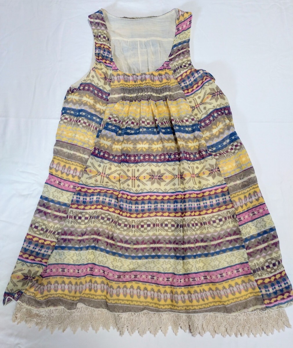 - 【古着】アジアン チュニック キャミワンピ ノースリーブ Asian 総柄 レース アジア 夏仕様 ワンピース 透けない 裏生地あり A01