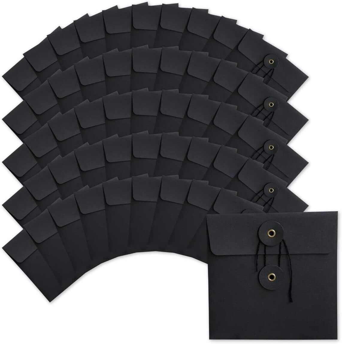 - ブラック 黒色 ディスクケース クラフト 紙 CD ケース ハトメ紐付 無地 厚紙 13x13cm DVD