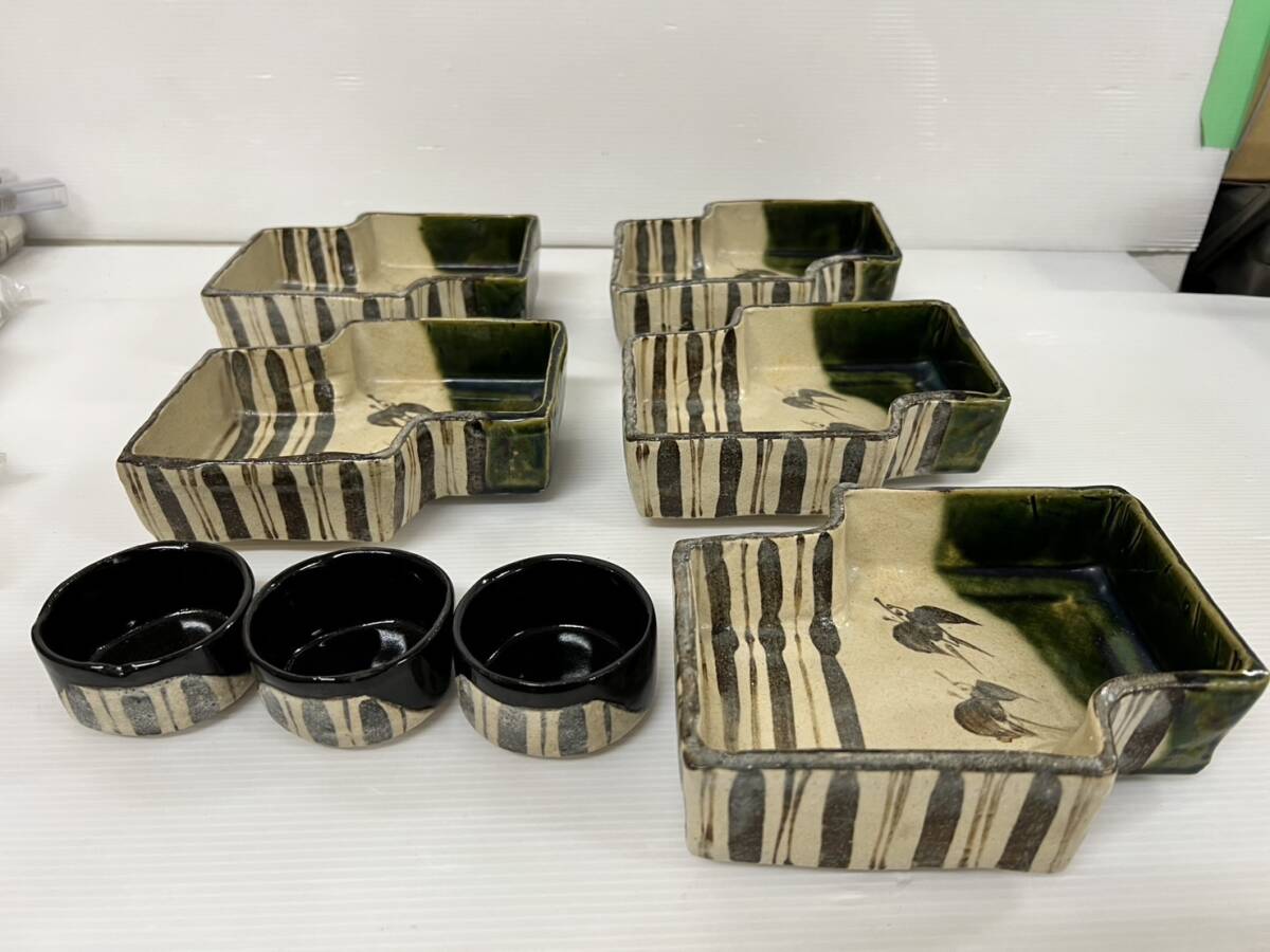 - (JT2505)織部焼セット 小鉢5客 お猪口3個