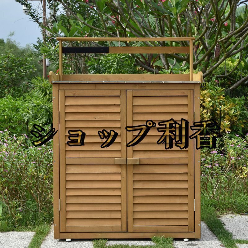 > 希少色★ 園芸用品 物入れ 天然木 木製/亜鉛メッキ素材 収納ボックス 収納庫 物置き 屋外収納 大型 倉庫 屋外 ガーデニング 収納棚 棚