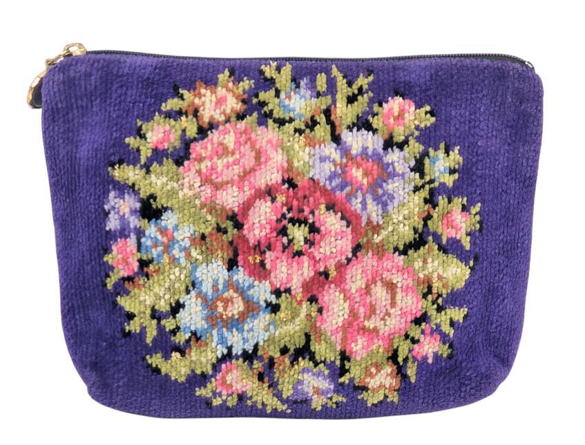 - フェイラー ポーチ 19.5cm パープル 紫 花柄 フラワー パイル シュニール織 FEILER 【中古】
