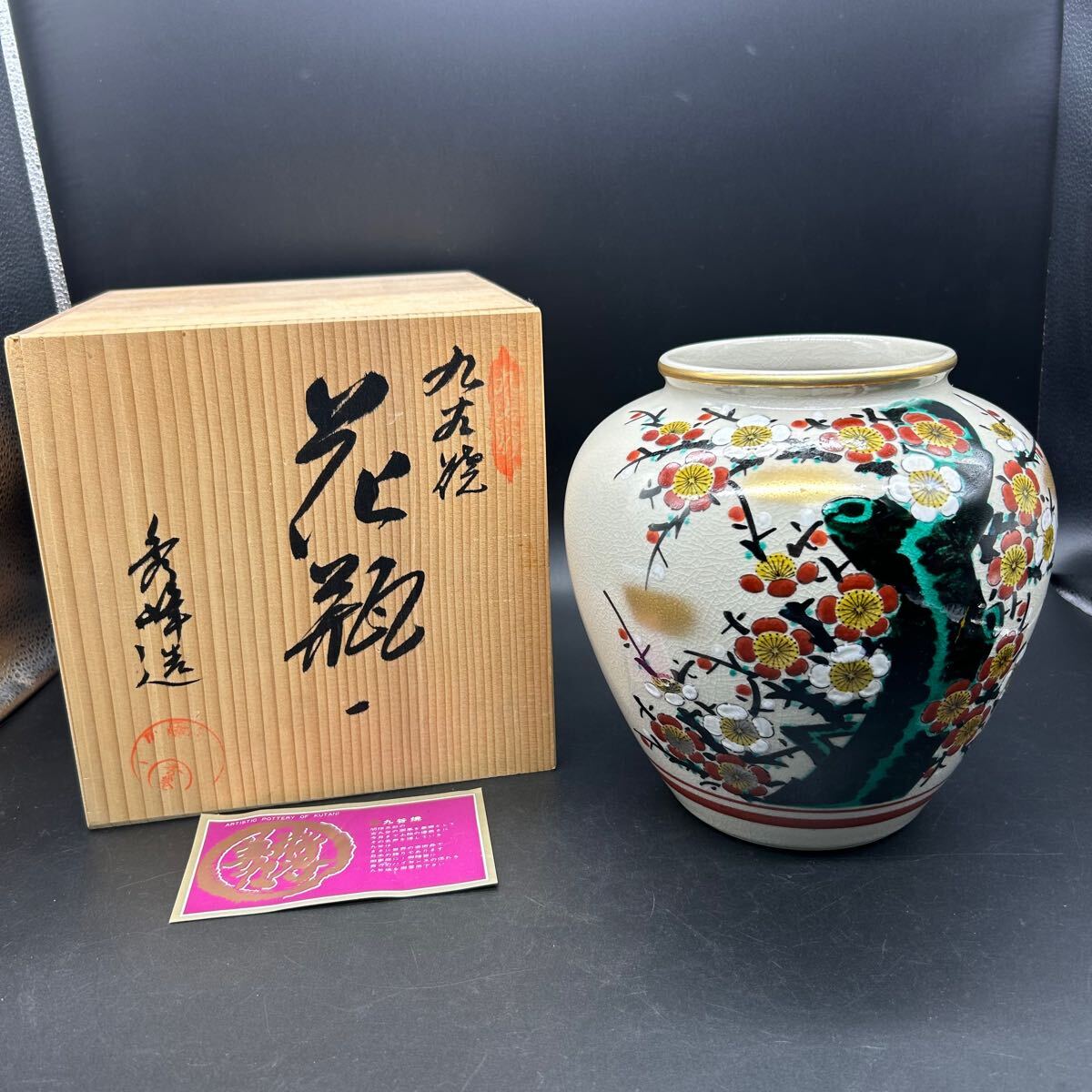 > 九谷焼 花器 九谷秀峰 金彩 梅図 花瓶 花入 フラワーベース 壺 インテリア 置物 ネ9