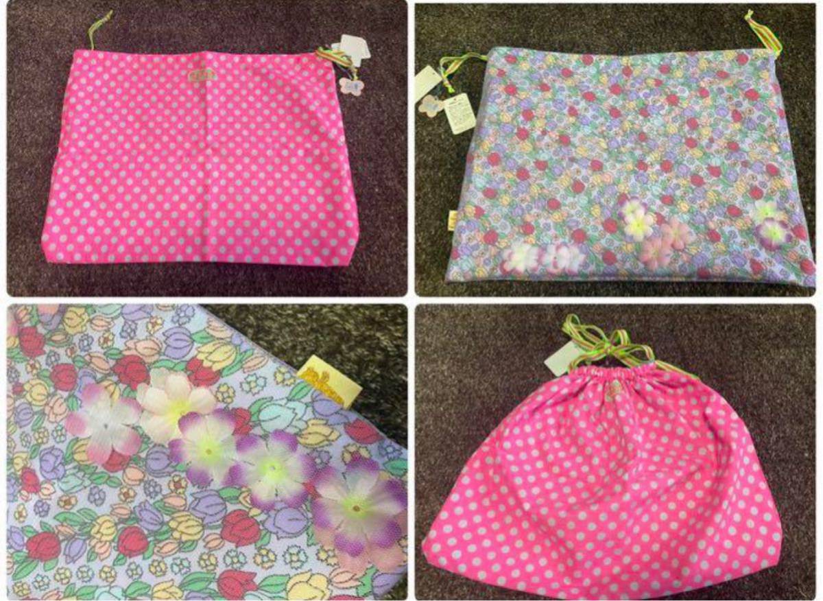 - 新品fafaフェフェ リバーシブル造花入り巾着バッグ チューリップ柄 人気完売 babyお着替え 幼稚園保育園 体操服入れバッグ