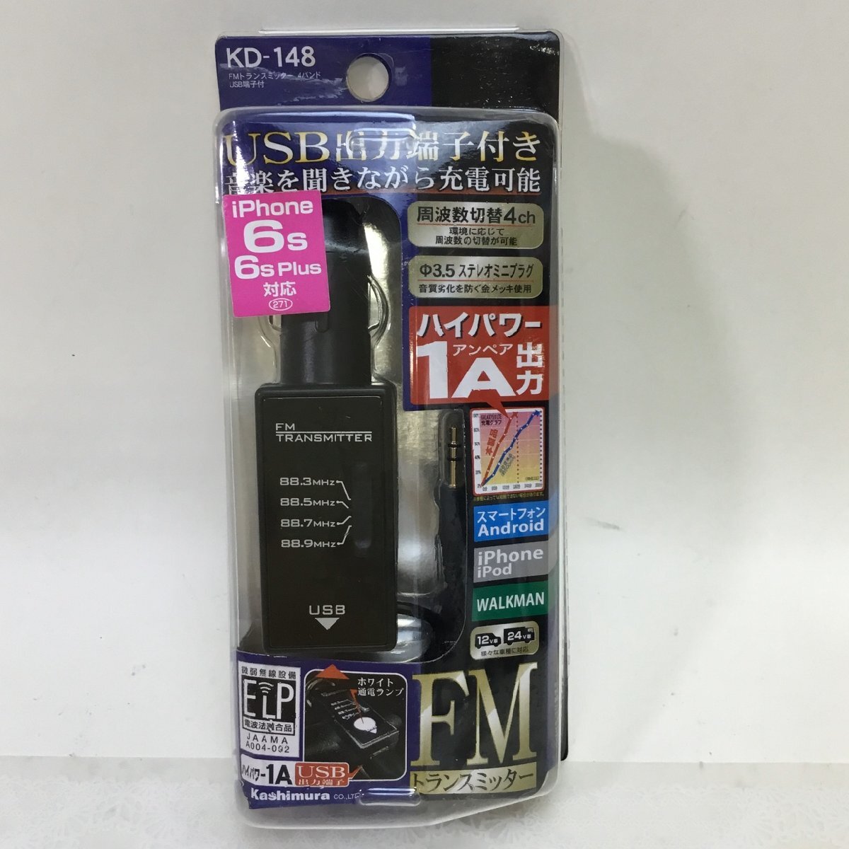 > 【未使用品/CSH】カシムラ 樫村 KASHIMURA [3.5mm・USB給電]FMトランスミッター 充電 ブラック KD-148 RS0517/0005