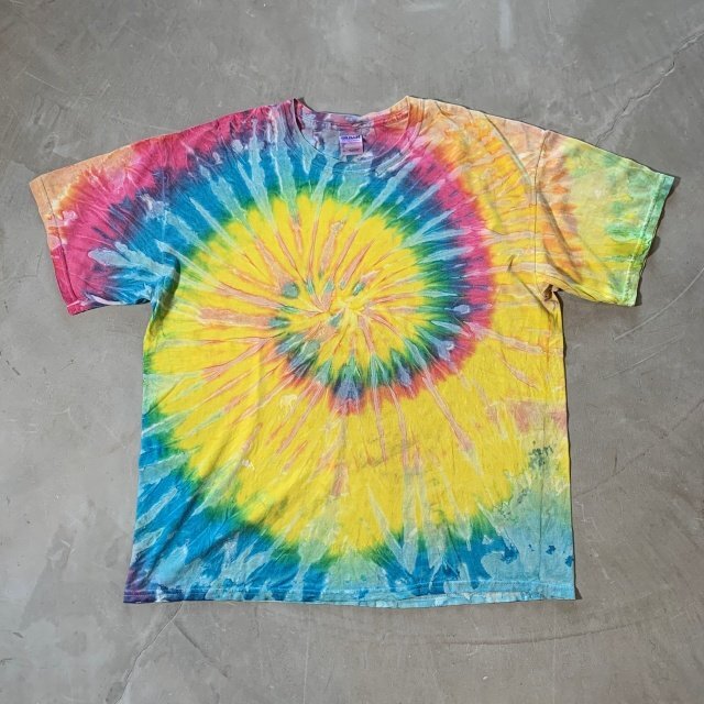 > 【XL】2000s GILDAN タイダイTシャツ 黄色 渦巻■ビンテージ オールド アメリカ古着 ギルダン コットン サイケデリック ヒッピー