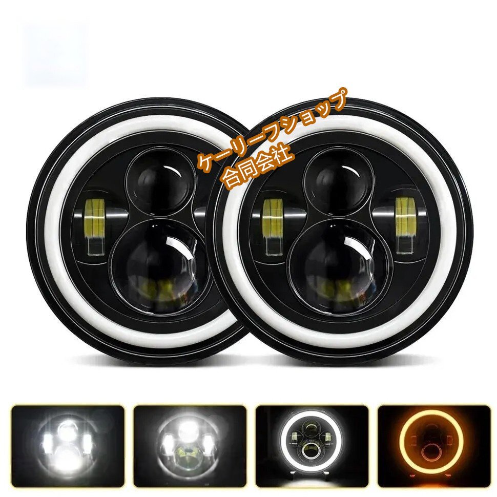 - 高輝度LEDバイクヘッドライト H4対応 7インチ ハーレー・BMW・ホンダ用2個セット