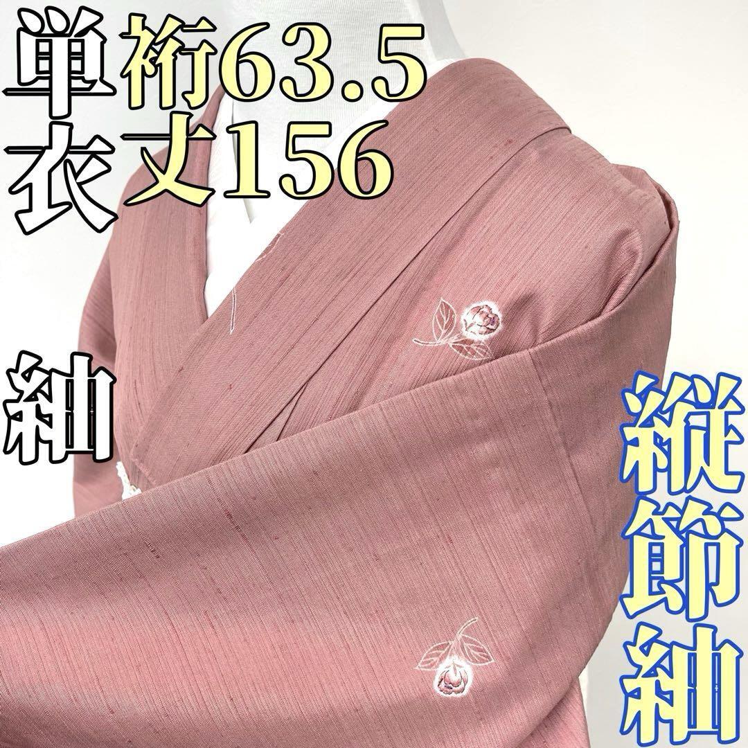 - 【着物と帯 時流】ヒ25685◆正絹 単衣 紬◆縦節紬 ピンク 美品