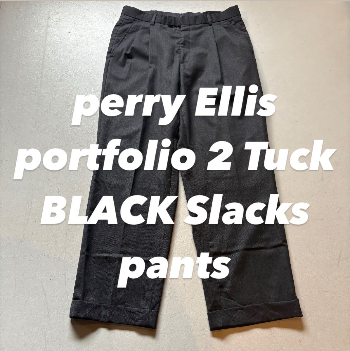 > perry Ellis portfolio 2 Tuck BLACK Slacks pants ペリーエリスポートフォリオ ブラックスラックス パンツ 2タック