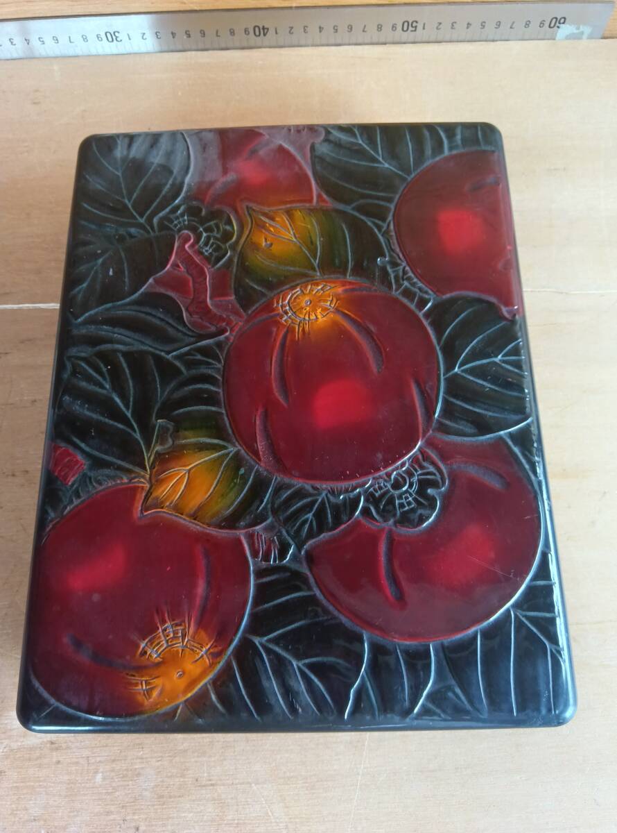 > 25051809 柿柄 文箱 昭和レトロ 書類入れ 硯箱 書道箱 小物入れ レターケース 柿柄彫刻 彫刻柄 重厚文箱