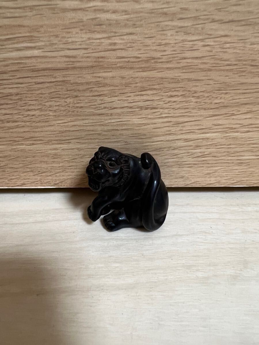 - 虎 トラ 根付け 置物 インテリア 時代物 縁起物 木彫り