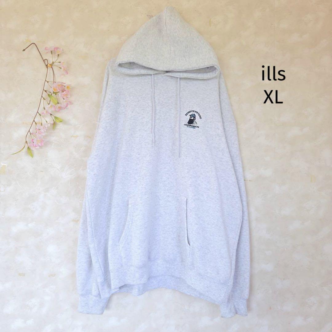 - イルズ ills パーカー【XL】刺繍イラスト グレー 長袖 メンズ フード