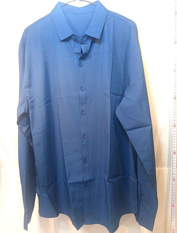 - ビジネスカジュアル長袖ソリッドシャツ 鮮やかブルー しわになりにくい快適オールシーズン多用途トップ メンズ 3XL ★鄭11 [丨1[丨3