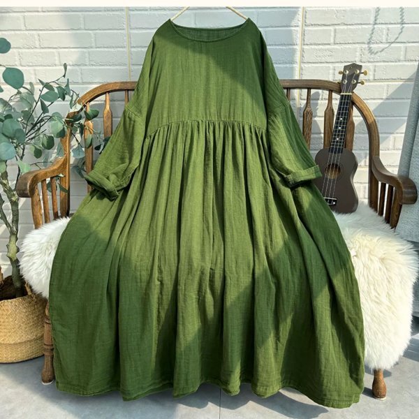 - yy ワンピース ゆったり 切り替え ふんわり アンティーク風 ロマンファッション 純色 綿100% グリーン