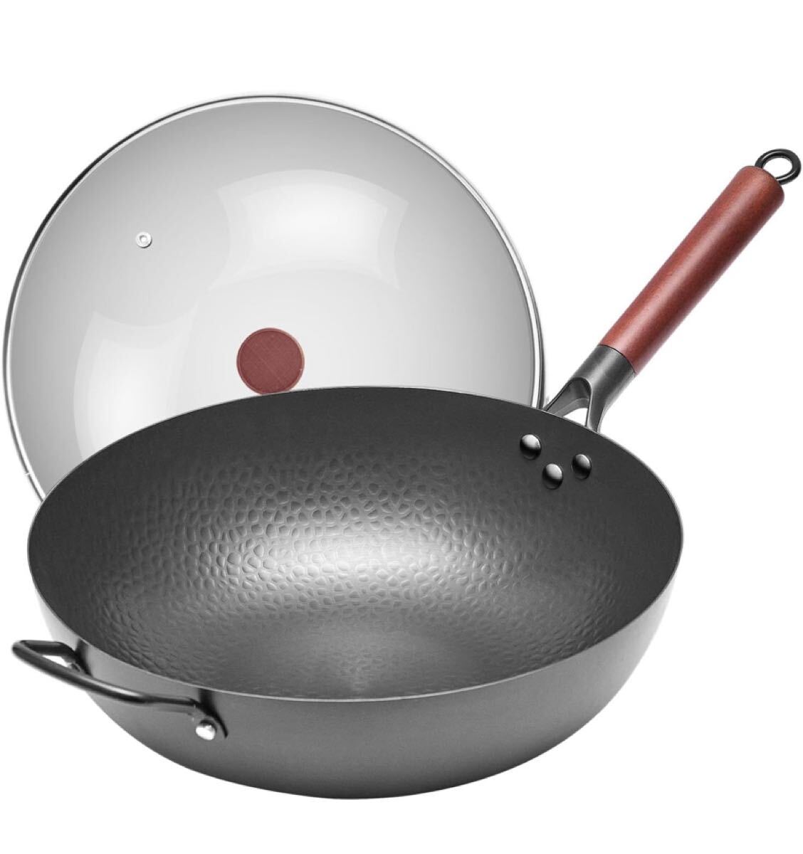 - WANGYUANJI 中華鍋 深型フライパン 鉄 34cm 炒め鍋 窒化鉄 コーティングなし 鉄製 鍋 ガラス蓋付き チャーハン IH・ガス火対応
