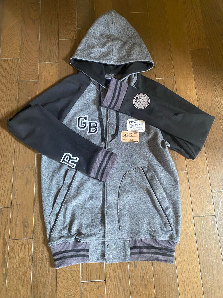 - 美品スタジアムジャンパースウェットトレーナーフードパーカーフーディワッペンMスタジャン ブラック グレーインナーアウター