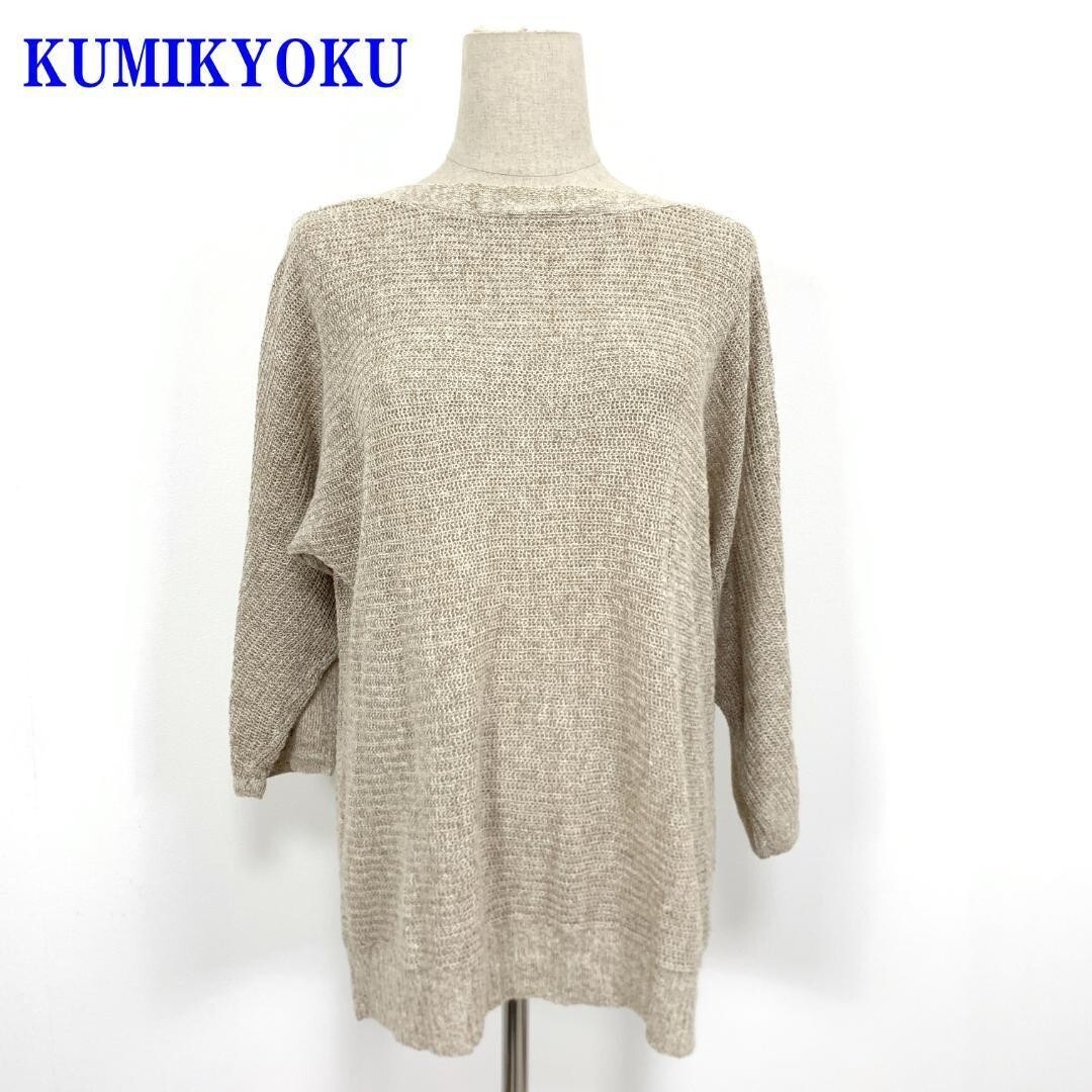 - クミキョク 組曲 七分袖ニット ベージュ KUMIKYOKU 袖丈調節可能 五分袖リネン100% 2 C2719