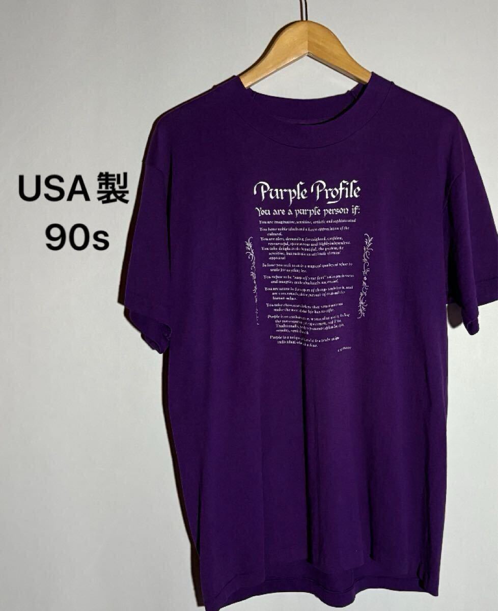 > USA製 90s fruit of the loom ヴィンテージ Tシャツ 古着 L パープル 紫 vintage メッセージ オールドイングリッシュ プリント シングル
