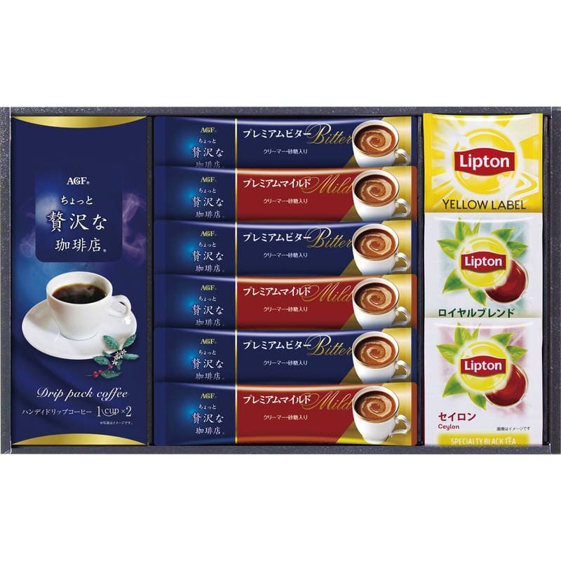 ▼▼▼▼▼▼注意事項▼▼▼▼▼▼・送料込み(送料800円が商品価格に含まれています) 一部地域では追加送料あり。・お取り寄せ商品です。弊社にて手配後、メーカー・卸業者からの直送になります。・まれにメーカー欠品、出荷遅延等が発生致します。問題発生時は別途メールにてご連絡致します。・配送方法の指定、日時指定、置き配、ギフト対応、他商品との同梱配送などは対応できません。・まとめ買いや複数購入の場合は通常より発送に時間が掛かる場合がございます・複数個口の場合、2階以上への搬入ができない場合があります。(その場合は1階での受け渡しとなります)・大型連休、お盆、年末年始などは発送をお休みさせていただく場合がございます・メーカー都合により、パッケージは予告なく変更される場合がございます・梱包用のダンボールはリサイクル品を使用させていただきます。・注文に関するご連絡(注文確定通知・発送通知など)はメールでご案内させていただきます※商品ページの内容について、少しでもご不明な点などがございましたら購入前に一度ご連絡ください▲▲▲▲▲▲注意事項▲▲▲▲▲▲〇商品説明AGFのちょっと贅沢な珈琲店ブレンド珈琲とリプトン紅茶の詰合せです。〇商品仕様【パッケージサイズ】300×35×190mm【内容】AGFちょっと贅沢な珈琲店/スペシャルブレンド:7g×2袋×1、スティック×6(マイルド・ビター×各3)、リプトン 紅茶ティーバッグ/イエローラベル・ロイヤルブレンド・セイロン×各2【アレルゲン】乳【生産国】日本【パッケージ形態】化粧箱入【保存方法】常温【賞味期限】製造日より約390日(出典:創愛)