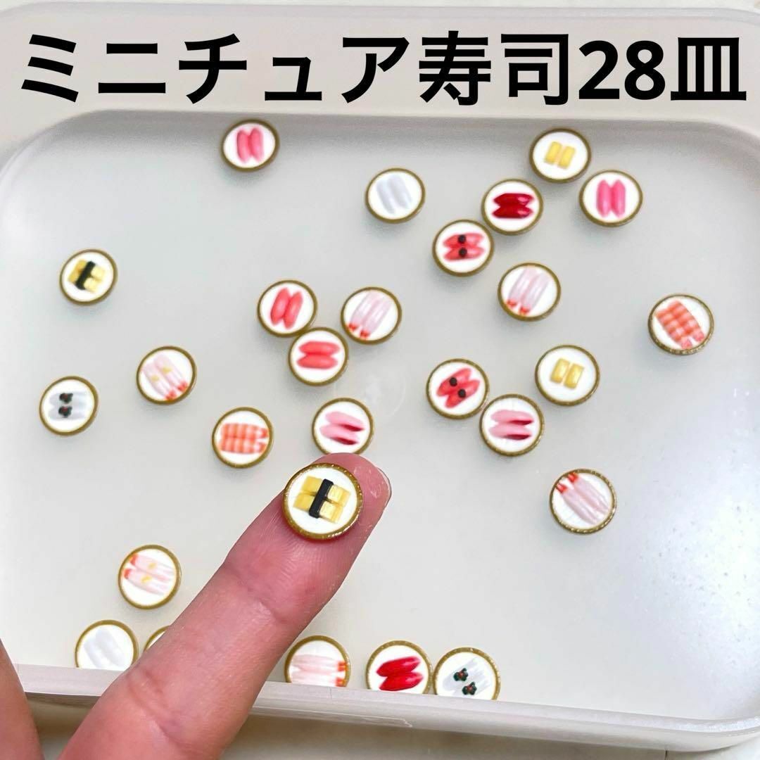 - ミニチュア 寿司28皿 ドールハウスに 完成品 フィギュアに 1/64より大 ミニチュアイメージ ミニチュアフード