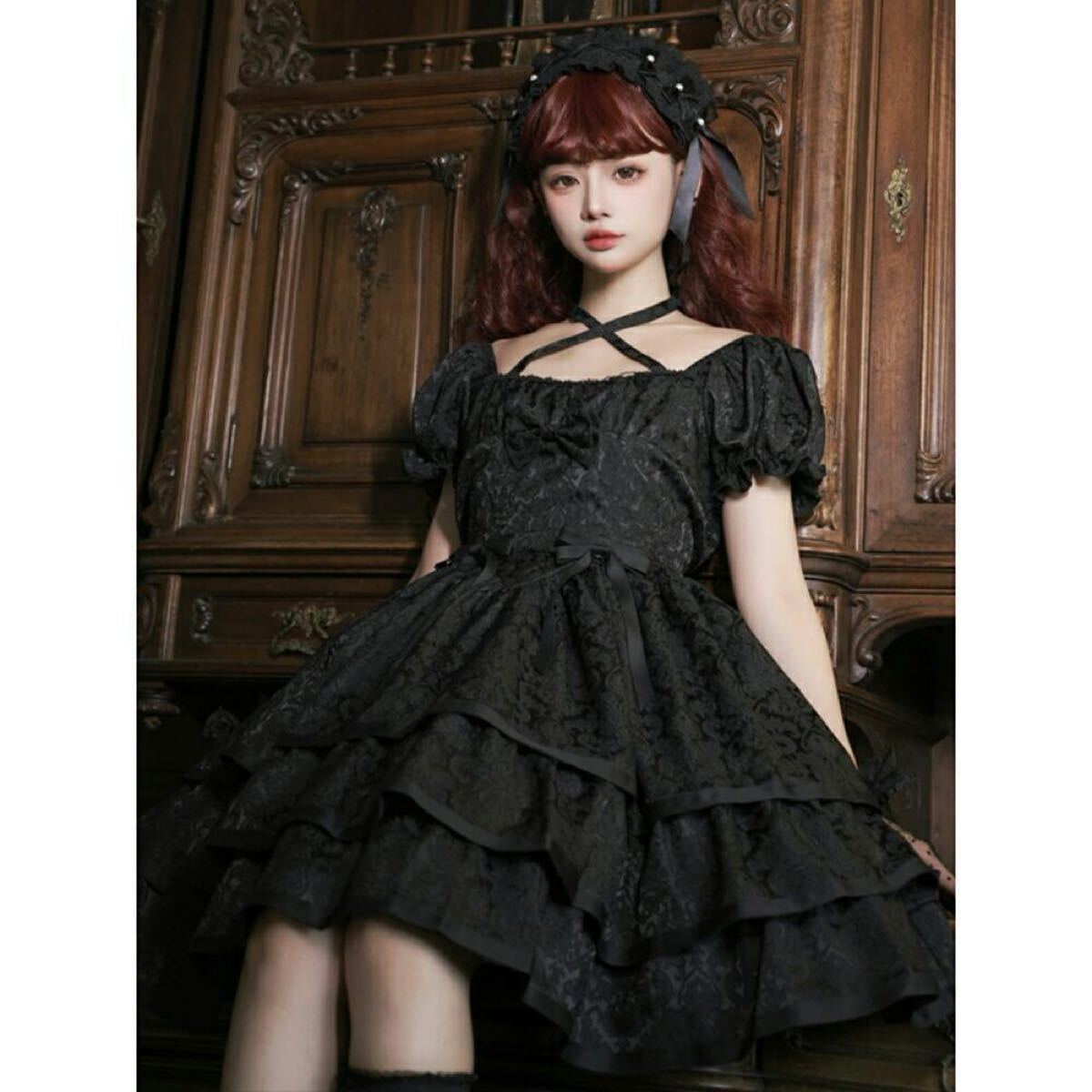 - 【XL】ロリータ いばら バラ オリジナル Aライン ドレス 半袖 OP 三段 ロリータドレス