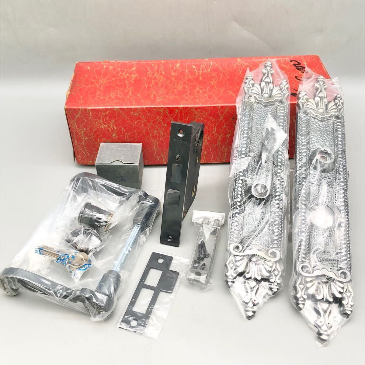 - [新品 未使用] サンタイガー ギリシャロック 大 レバー ハンドル 全長 約34cm 銀古美 アンティーク レトロ BS 64mm 玄関 扉錠 金物屋 在庫