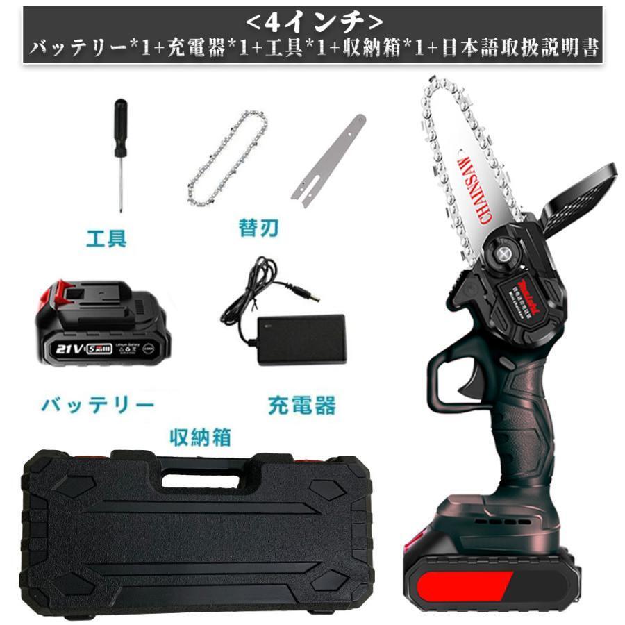 - 充電式チェーンソー マキタ 18Vバッテリー互換対応 小型チェンソー バッテリー1個付 収納ケース付き ミニチェーンソー 電動チェーンソー