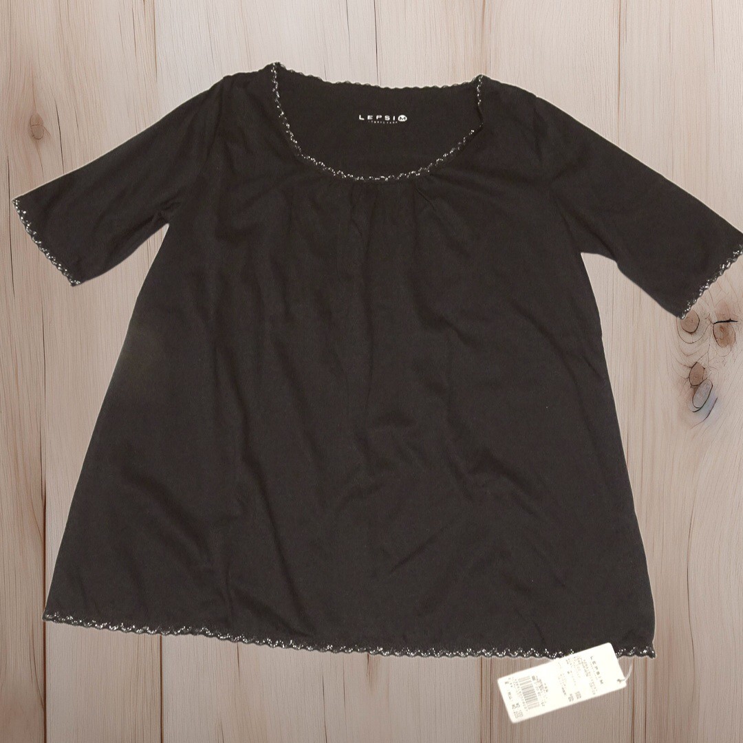 > 2409 送料無料 新品タグ付き ローリーズファーム レプシィム 半袖 カットソー ブラック Mサイズ ラメ / LEPSIM LOWRYS FARM トップス