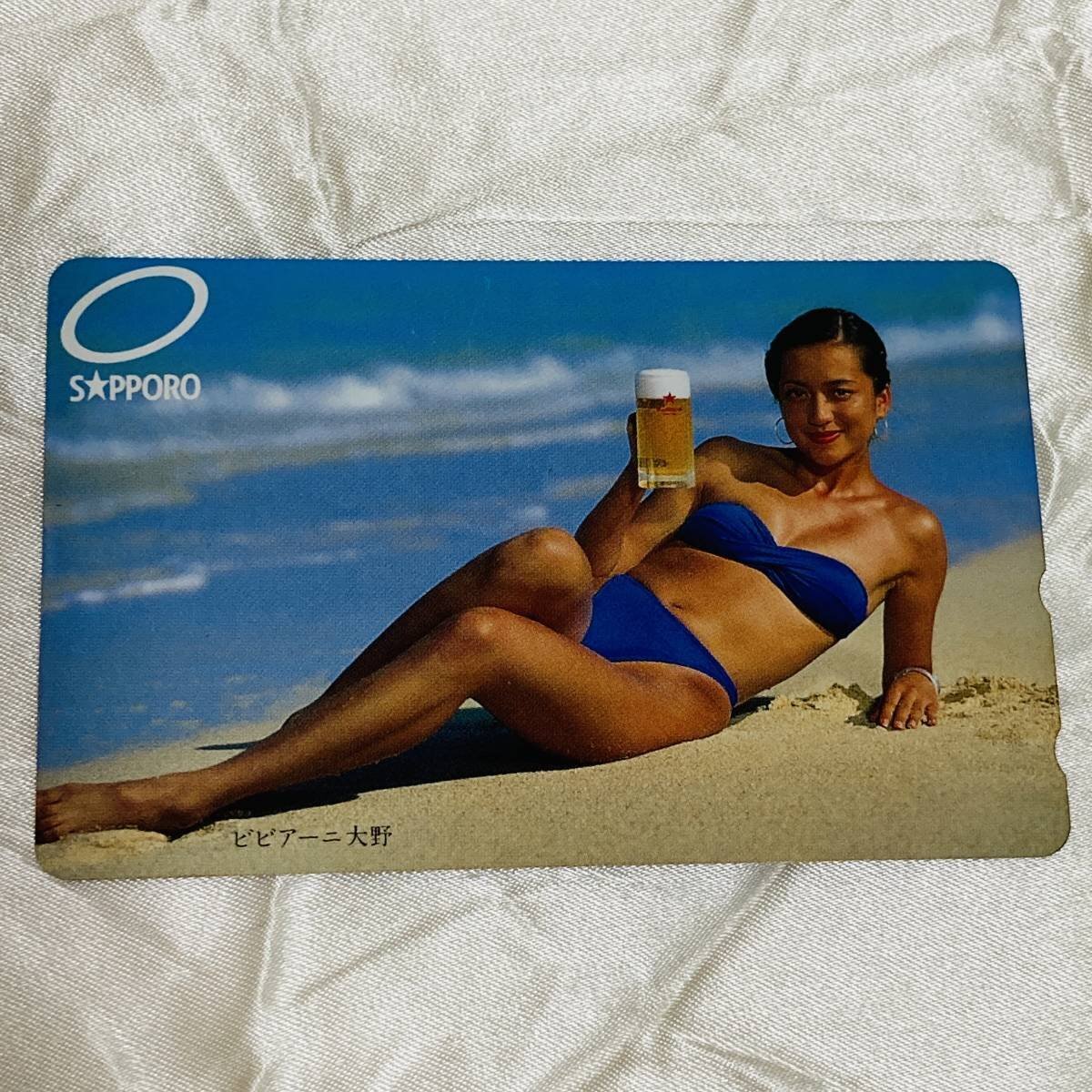 > SK ビビアーニ大野 サッポロ ビール 水着 ビキニ 青 海 テレカ 未使用 テレホンカード 50度数