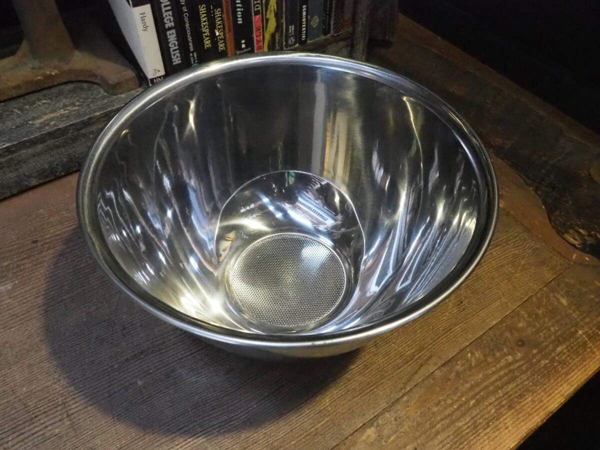 - 【水切りボウル】デッドストック未使用品ステンレス製コランダー笊古道具インテリア鍋キッチンカフェ薪バスケット籠ストーブキッチン