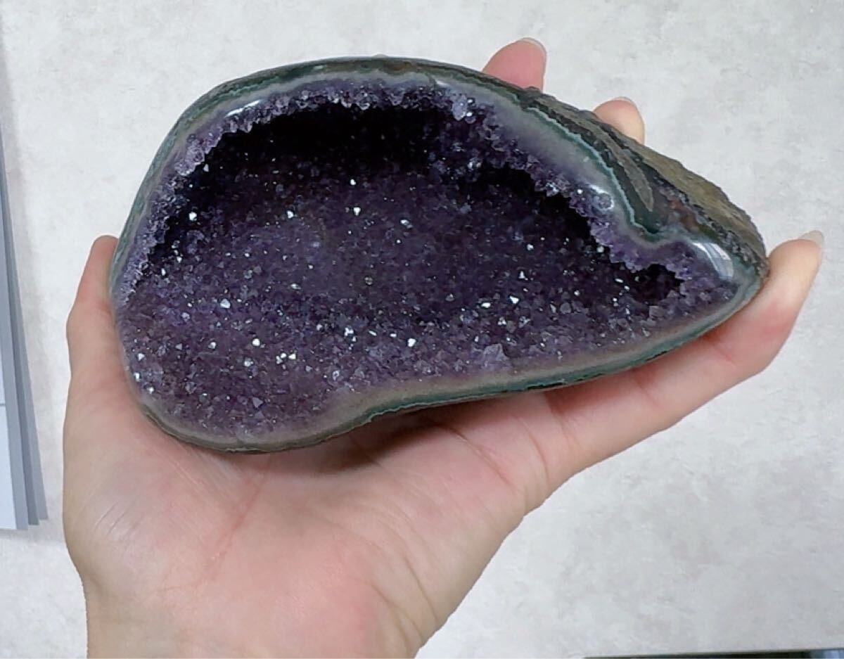 > SS-0251《本物保証》天然石 アメジスト 紫水晶 口形 金銭運 八方来財 原石 浄化 鉱石 一点物 パワーストーン 九紫火星運 金属台座付き