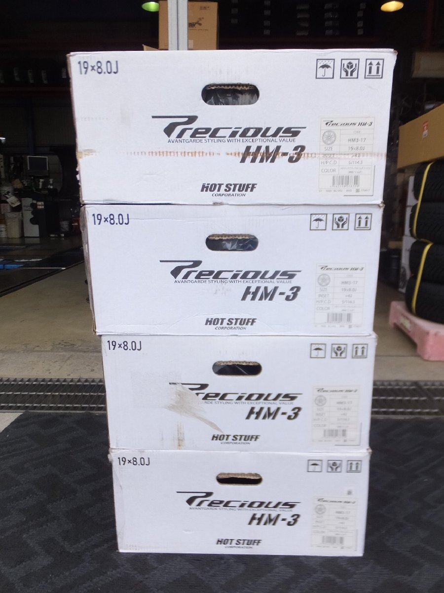 - 【新品未使用ホイール4枚セット】 ホットスタッフ プレシャス HM-3 8.0J-19 5/114.3 +42 メタリックブラック&リムポリッシュ 19インチ