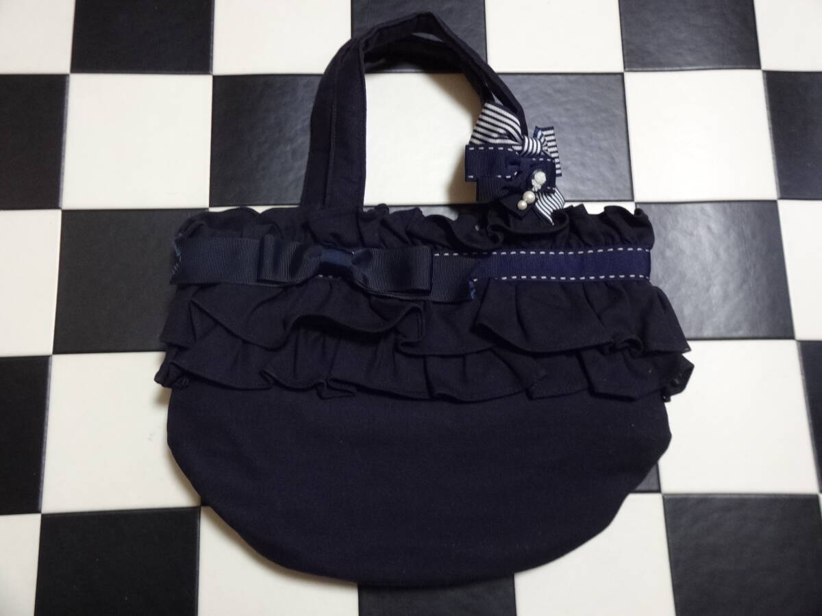 - GALLERY VISCONTI 布フリル ハンドバッグ R8365 紺 トート リボン ギャラリービスコンティ