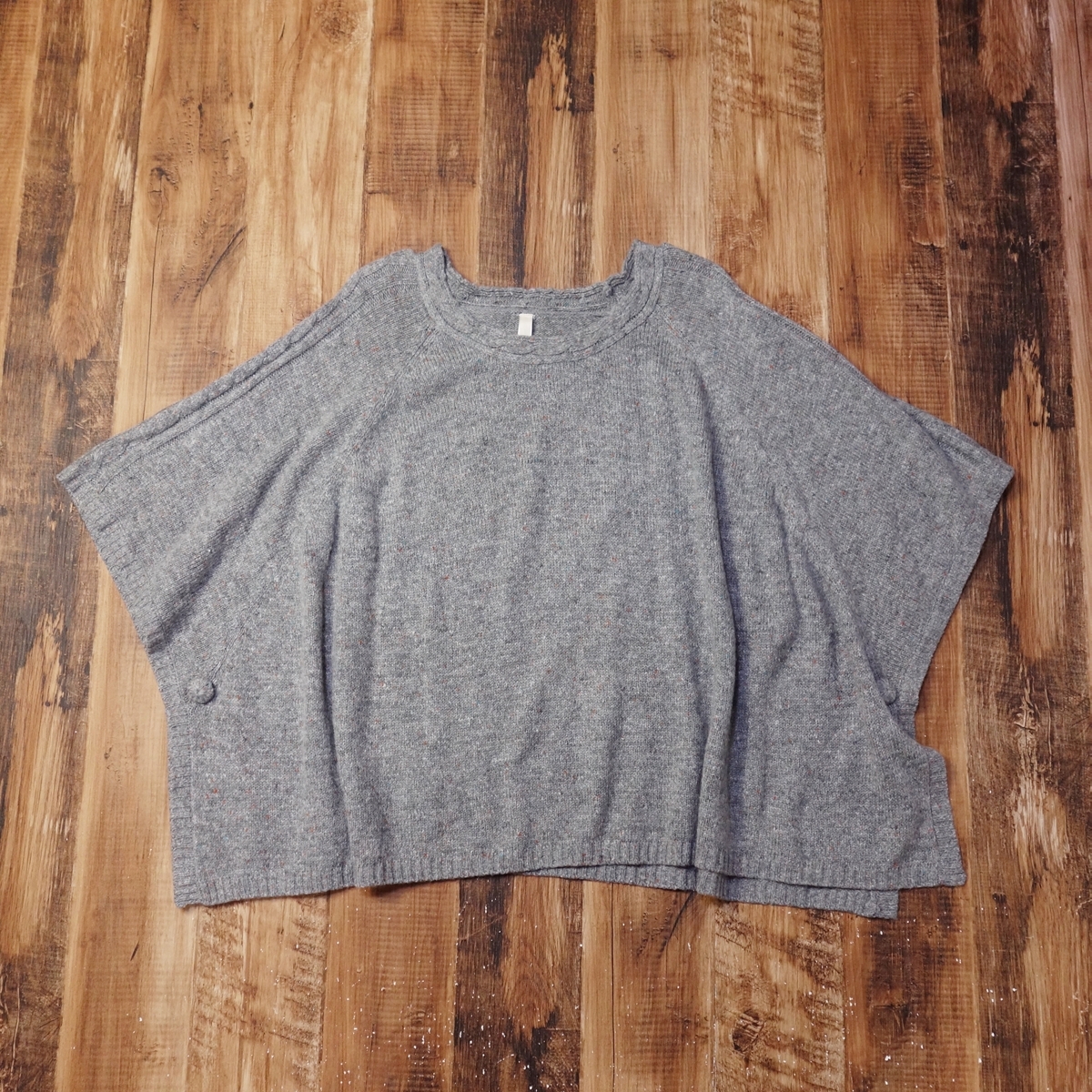 > 美品 リトルマーケット little market ポンチョニット レディース ボタン ケープ 秋冬 Fサイズ グレー LH22