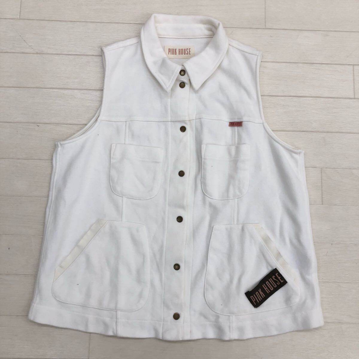 > 1756〓 PINKHOUSE ピンクハウス ベスト レディース サイズ不明 ホワイト トップス 上着 ノースリーブ スナップボタン カジュアル
