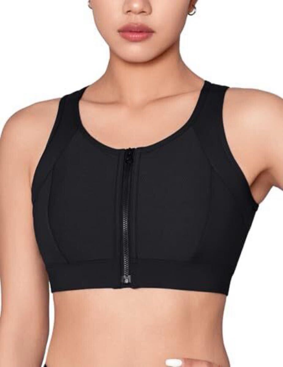 > イベット スポーツブラ 揺れない 前開き レディース ハイサポート 大きいサイズ おしゃれ レーサーバック 吸汗速乾 一体型カップ Lサイズ