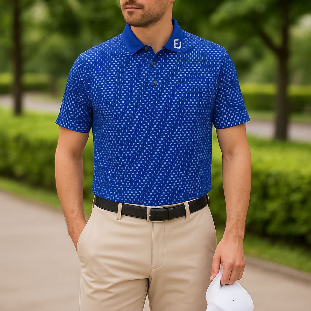 - ☆ FJ フットジョイ ゴルフポロシャツ XL 吸汗速乾 ストレッチ素材 青×柄