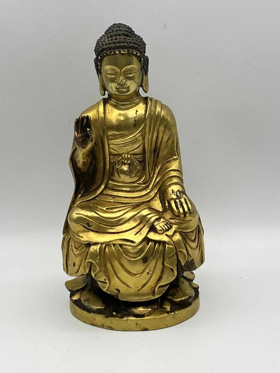 - 唐時代 金銅釈迦様像 阿弥陀如来 座仏 金銅仏 唐物 仏教用品 仏像 唐物 時代物 【旧家蔵出し】 希少貴重 精密繊細(A-42)