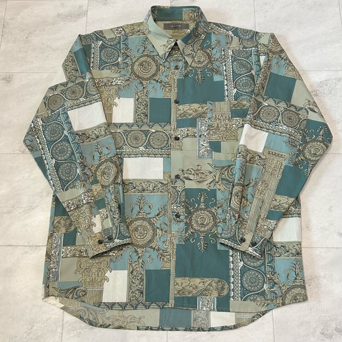 - REALISTIC 総柄 柄シャツ レトロ アート ビンテージ 長袖シャツ