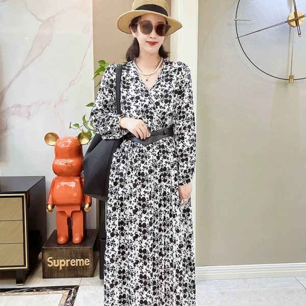 - mc 0705 長袖 ポケット ワンピース ゆったり オシャレ 裾広がる 通気性手触り抜群 肌に優しい ドレープ性 大人可愛 着丈120㎝ 柄49