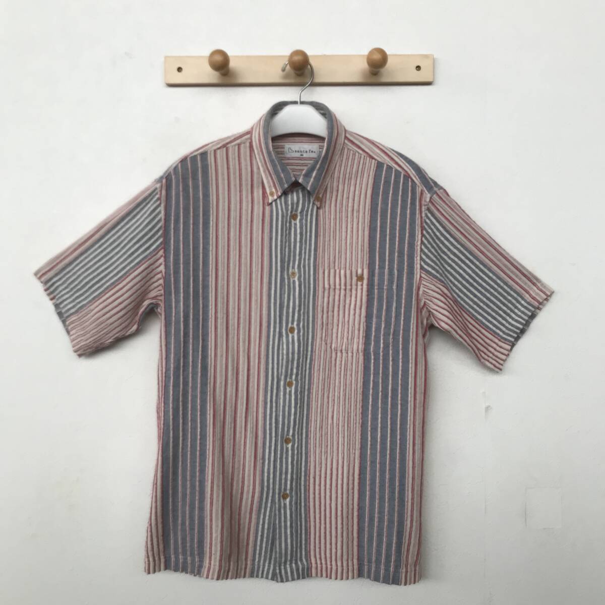 - santa fe サンタフェ メンズ 半袖ストライプB.D.シャツ 良品 size 48 BEE2407
