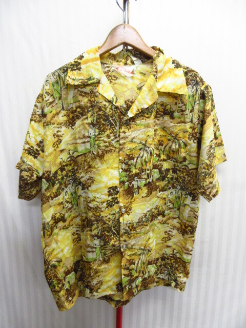 - CANDY CASUALS 70s80sヴィンテージ アロハシャツ メンズL オープンカラーシャツ 開襟シャツ 半袖ハワイアンシャツ イエロー 黄 05222