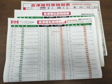 - (古本)会津若松駅時刻表2021年3月 2022年3月 会津線(会津鉄道)時刻表2022年3月改正 A2版 画鋲穴あり 田中印刷 A61818 20210312発行
