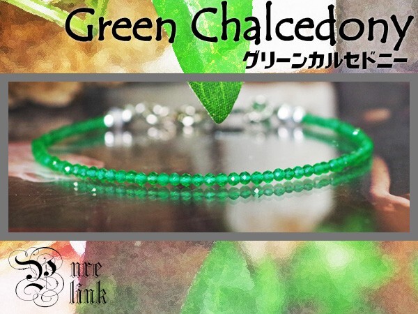 - 宝石質★精神的成長を促す魔石『グリーンカルセドニー』輝くカット極細ブレスレット