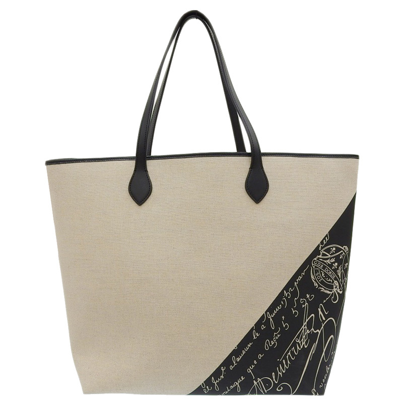- ベルルッティ BERLUTI トートバッグ キャンバス/レザー ホワイト/ブラック 中古 新入荷 OB2402